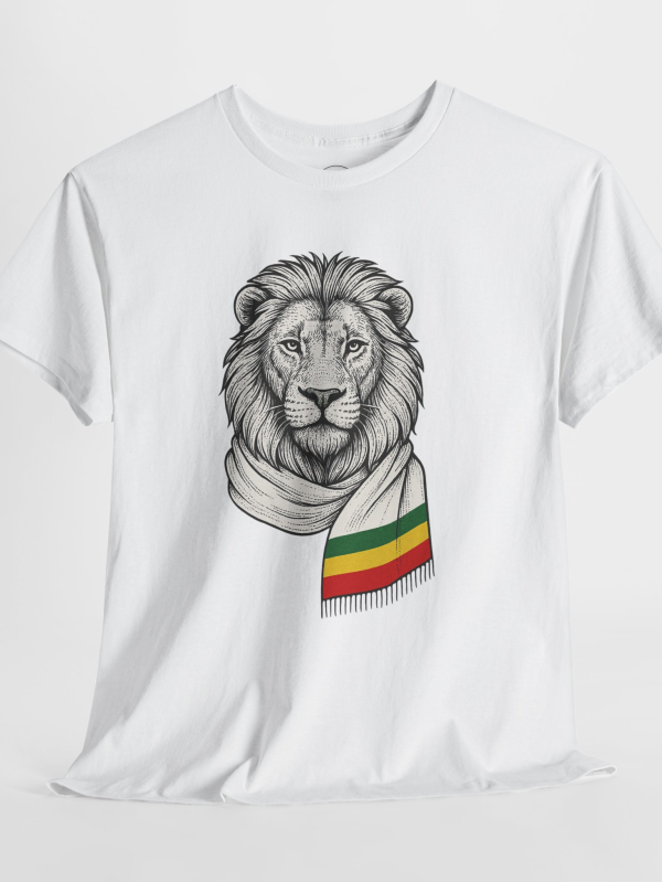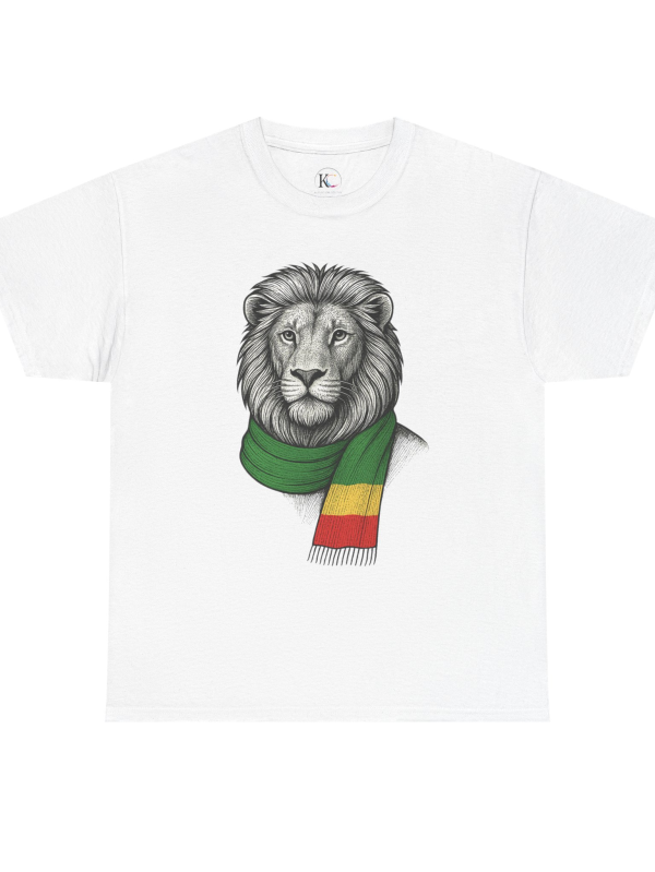 Lion Graphic Tee with Rasta Scarf, Realistic Lion with Ethiopian Scarf T-Shirt Design | African Heritage