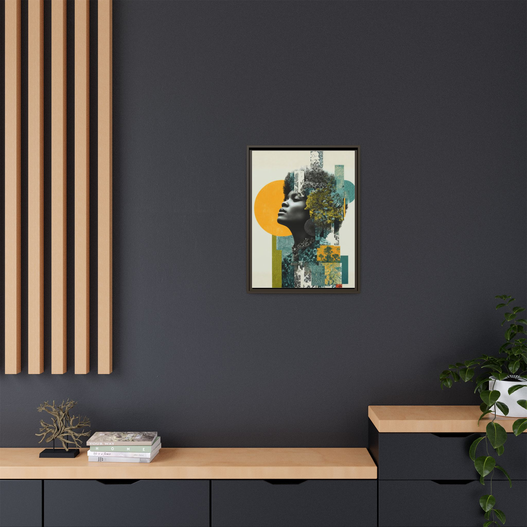 Transform your space with this stunning framed canvas art piece. Featuring vibrant colors and a unique design, this canvas adds a touch of modern elegance to any room. It’s perfect for galleries, living rooms, or personal art collections. The atmosphere it creates is both inspiring and uplifting, inviting creativity and conversation into the home. Ideal for art enthusiasts and anyone looking to enhance their decor. This piece is a creative gift option for housewarmings, birthdays, and holidays, making it a versatile addition to your gift-giving needs.